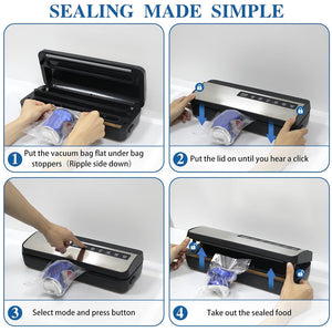 Seliwr gwactod awtomatig lluniaidd gyda gweithrediad un cyffyrddiad, 5 dull selio, a dyluniad hawdd ei ddefnyddio, sy'n bodloni safonau diogelwch ac wedi'i gefnogi gan warant 12 mis.