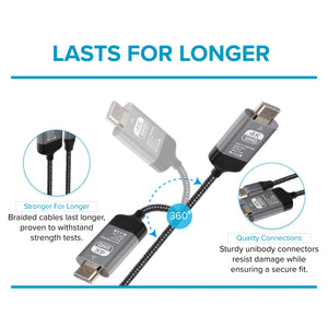 The Maplin USB-C to HDMI Cable Adapter (Supports 4K Ultra HD @ 60Hz) offers backward compatibility to HD 1080p and 720p. Connect your USB-C device (smartphone, laptop, tablet) to HDMI compatible displays, monitors, projectors and TVs with this 2-meter USB-C to HDMI Cable.