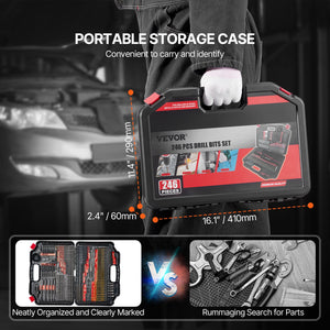 Drill Bit Set, 246 Pieces Drill And Driver Bit Set, Screwdriver Bit Set Suitable For Wood Metal Cement Drilling And Screw Driving, Drill Bit Sets Combo Kit Assorted In Organized Carrying Case