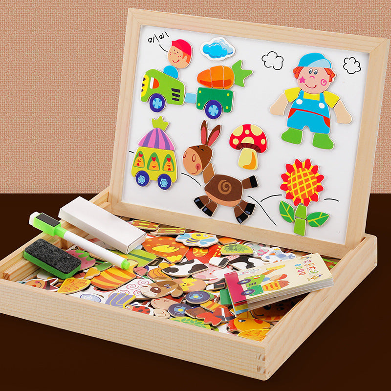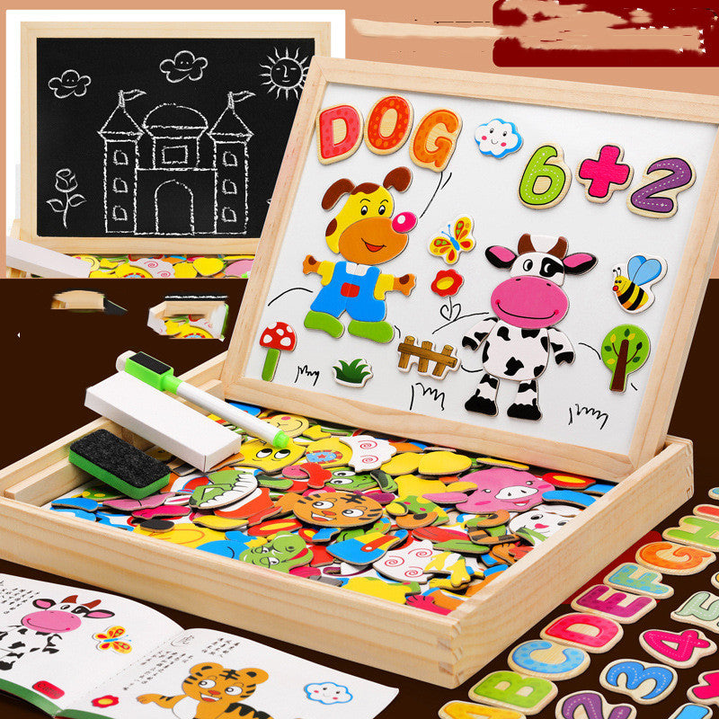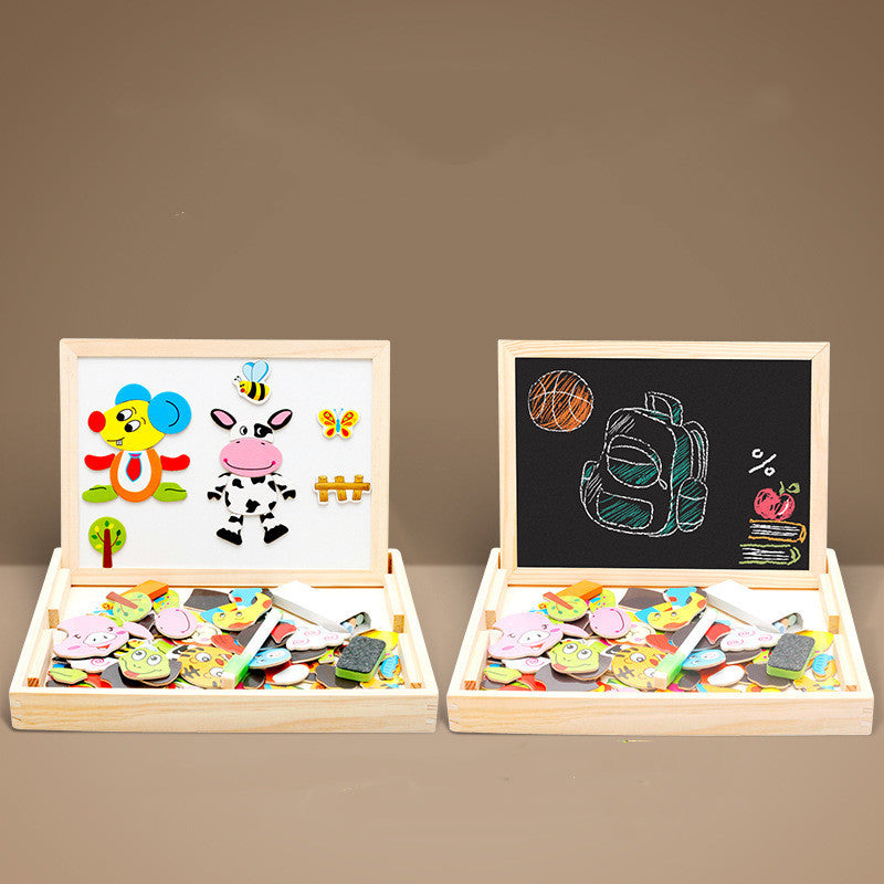 MWZ Magnetic Joypin Animal Zodiac Double-sided Drawing Board - Colorful Magnetic Stickers - Multiple Designs - 30x23x3.5cm - Wooden - Infant-Friendly - Illustrative - Comes with Puzzle Toy - Product Image Included