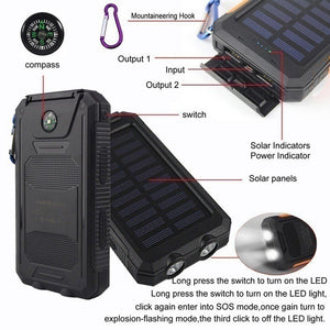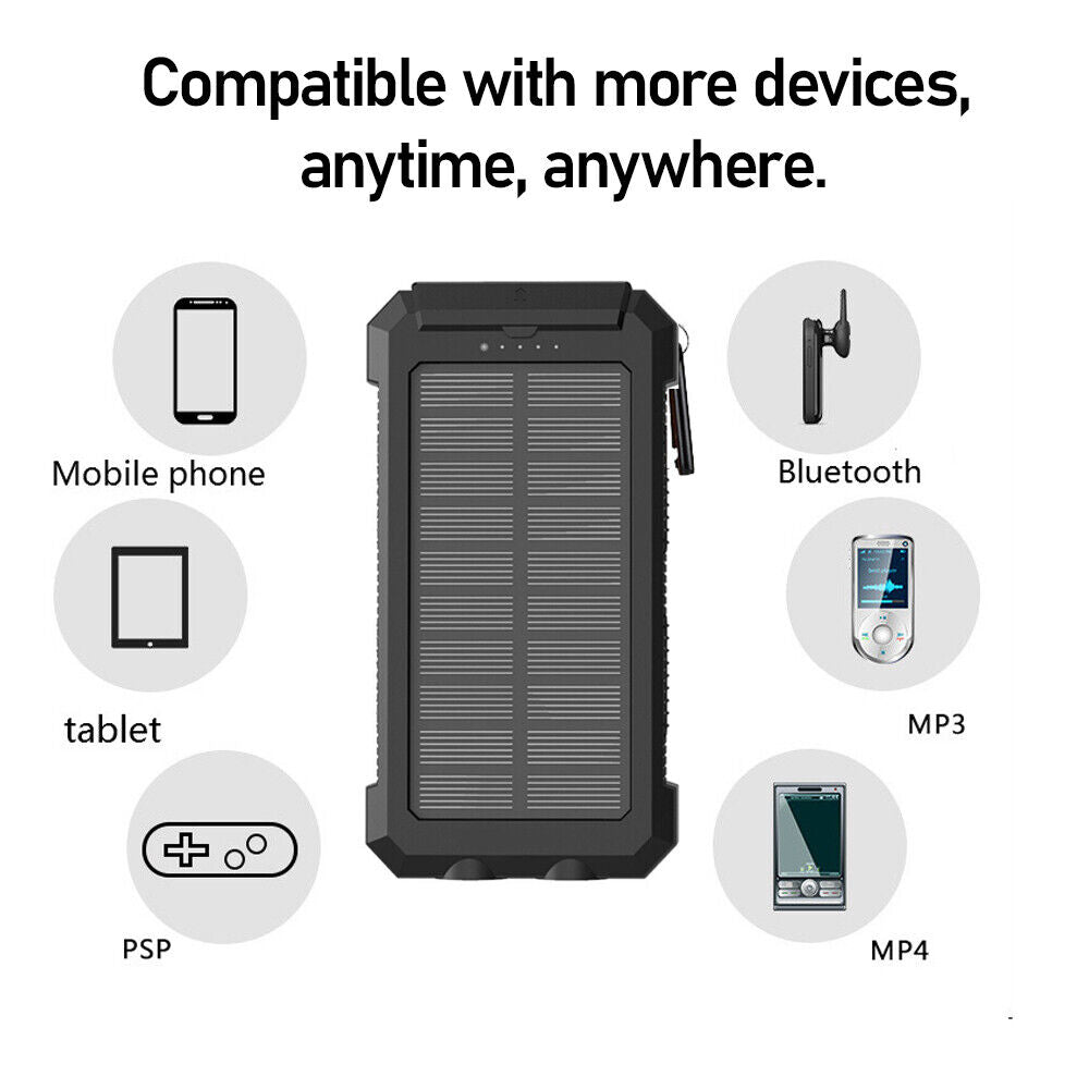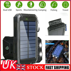 Solar Power Bank Waterproof 2 USB LED Battery Charger For Mobile Phone