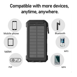 Stay powered on the go with this sleek and reliable solar power bank. Perfect for any outdoor adventure or travel, it protects against charging issues and short circuits while providing a high-capacity charge for your electronic devices.