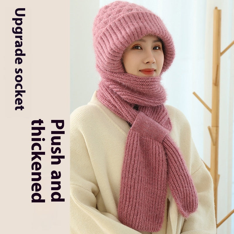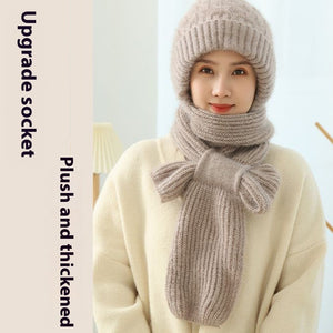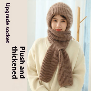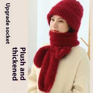 Popular Brushed And Padded Hats Scarf Double Layer Warm Wool Knitted