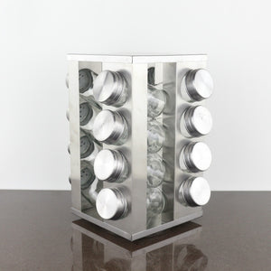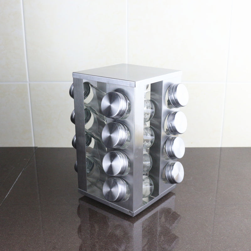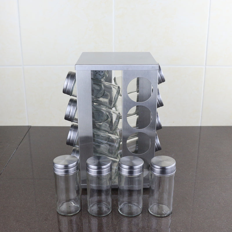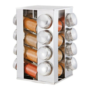Keep your kitchen organized and stylish with this sleek stainless steel storage rack that holds 16 square bottles with stainless steel covers. The rotary design allows for easy access to both upper and lower layers, perfect for storing your essential seasonings in one convenient place. At a height of 24.5CM, it fits perfectly on your countertop without taking up too much space. Upgrade your kitchen storage game with this modern and functional storage solution.