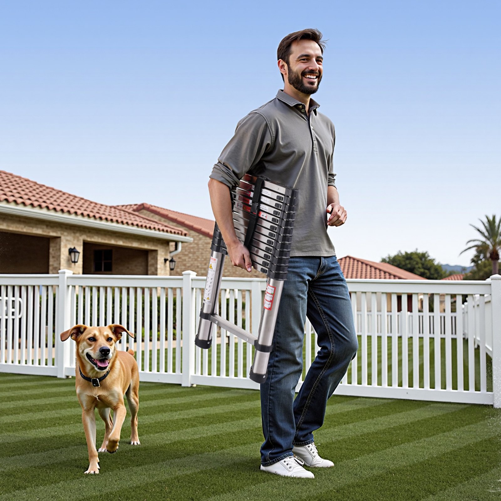 Telescoping Ladder, 3740mm Stainless Steel Lightweight Extension Ladder, Multi-Button Retraction Collapsible Ladders, 150 kg Capacity & Non-Slip Feet, Portable 13-Step Ladders for Home RV Loft
